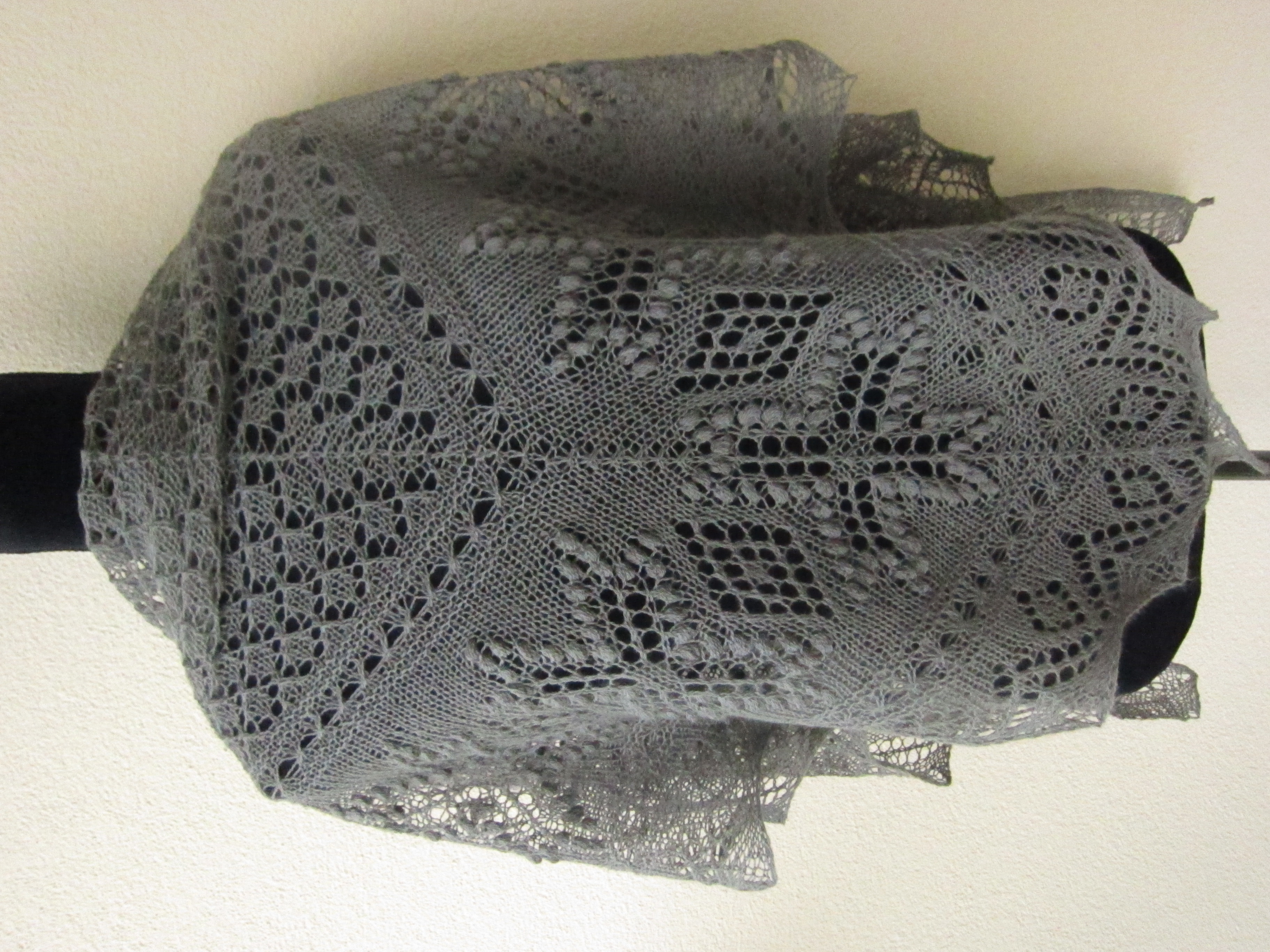 Hallist villasest pitsilõngast (100% villa) jämedusega 100 grammi 700 m kootud rätik.