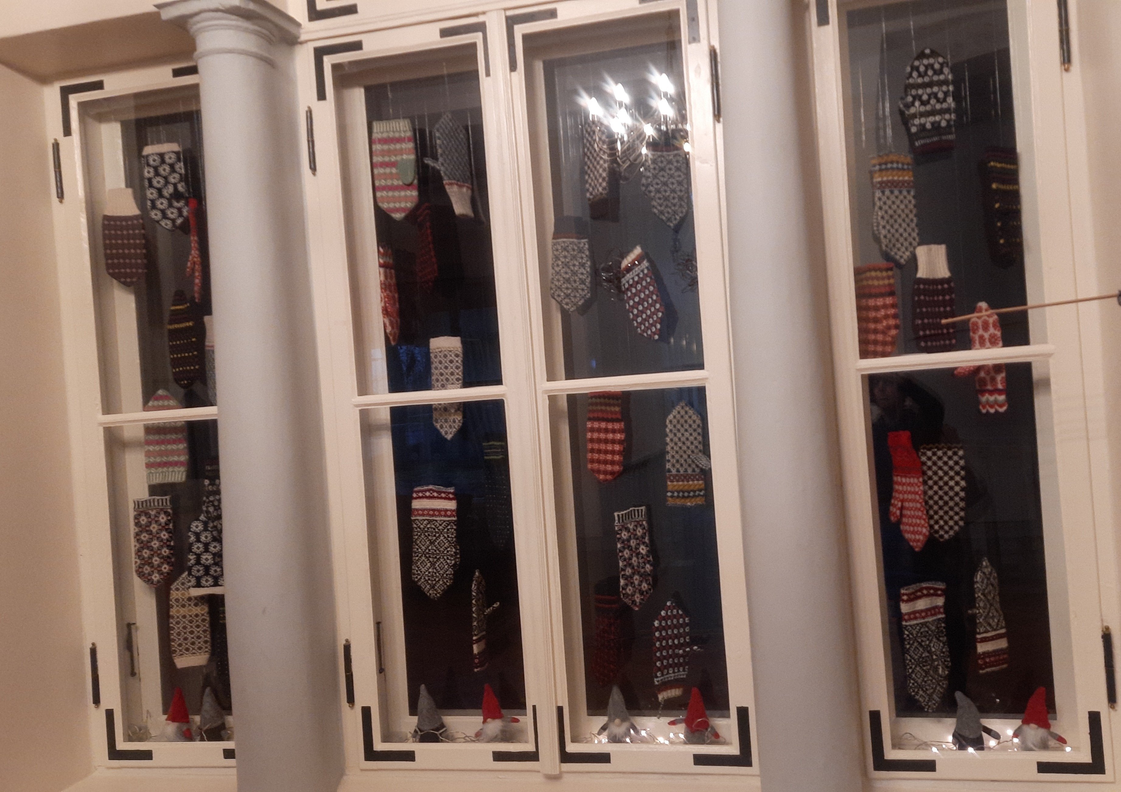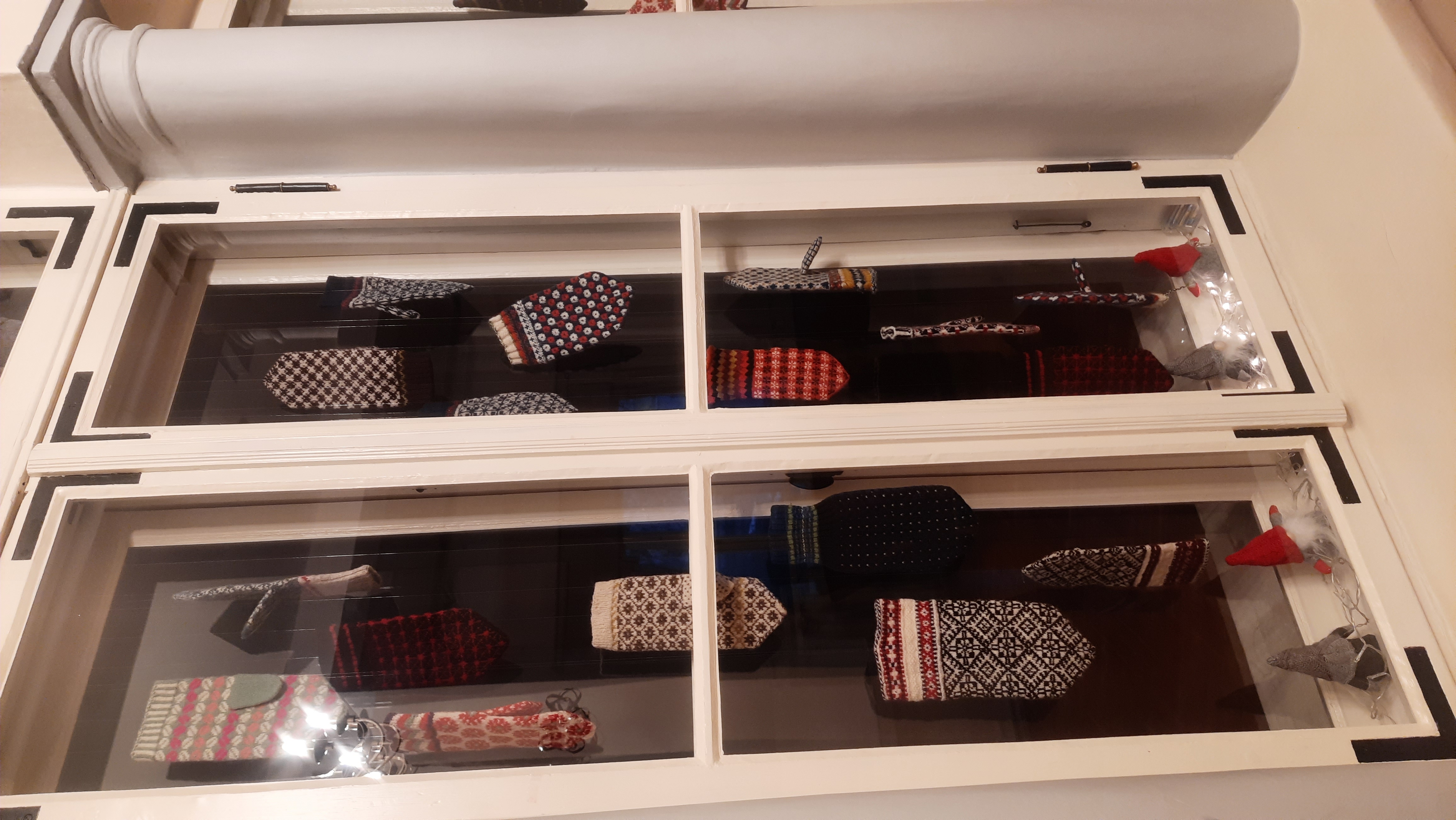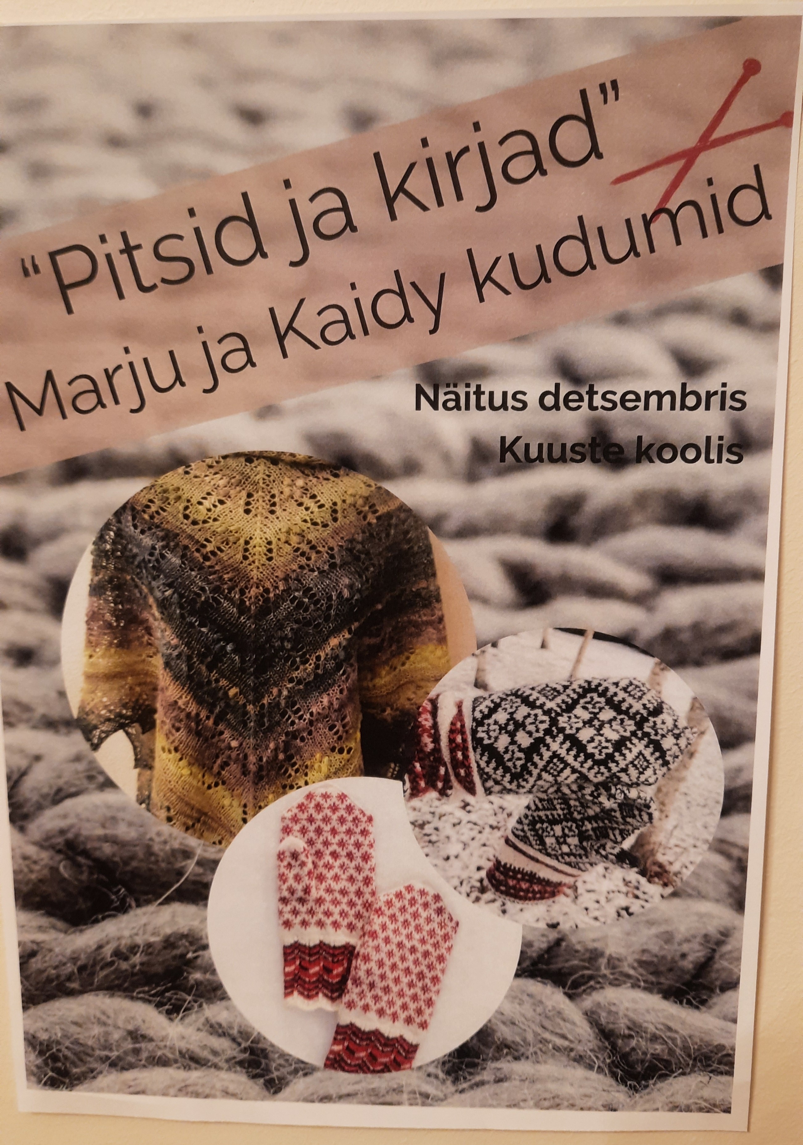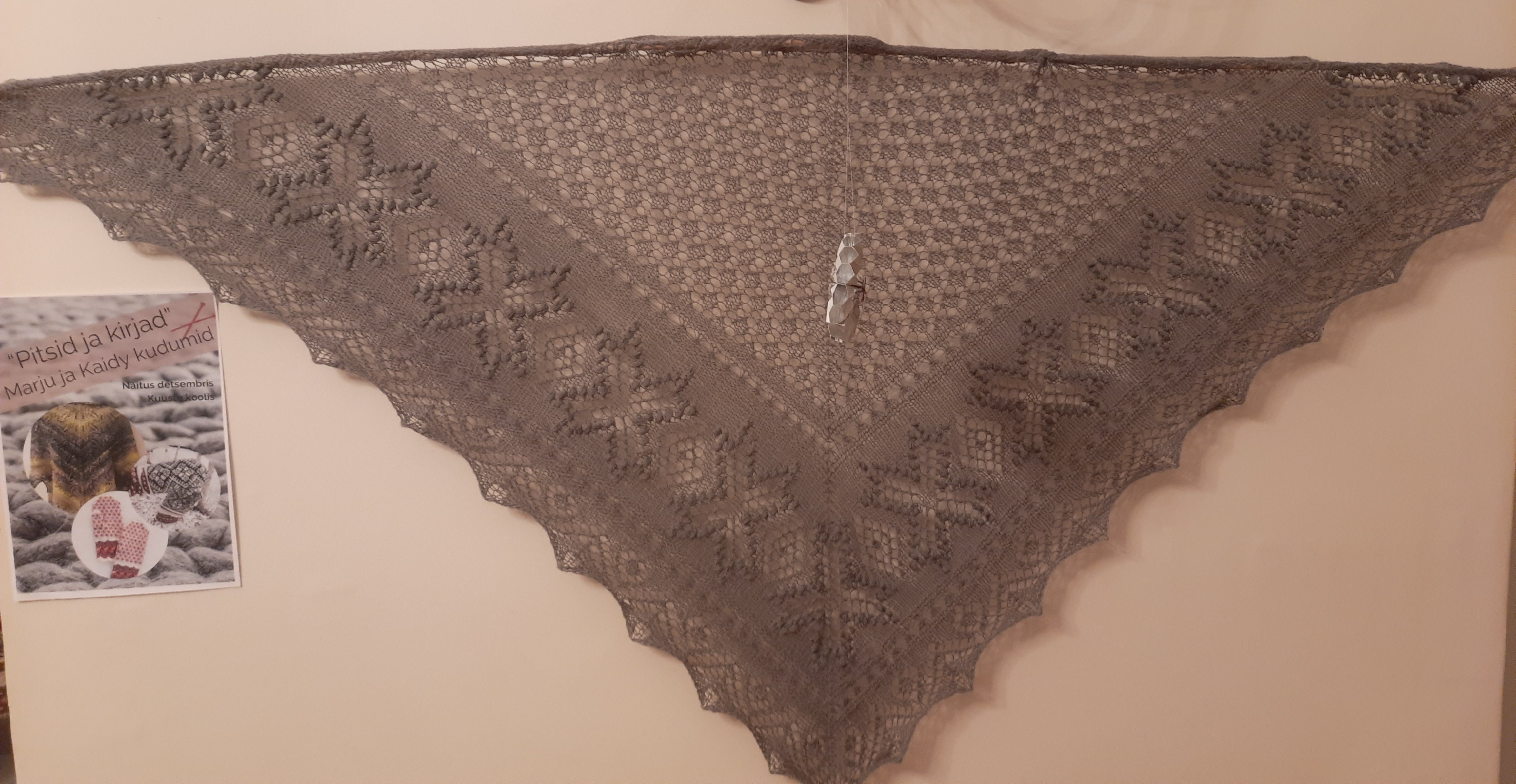 Sain osaleda ka väikesel käsitöönäitusel oma töö juures. Kolleeg Kaidy on kudunud väga palju peeneid kirikindaid ning ta kutsus aksendiks minu pitskudumid. Minu poolt kleit ja rätikud.