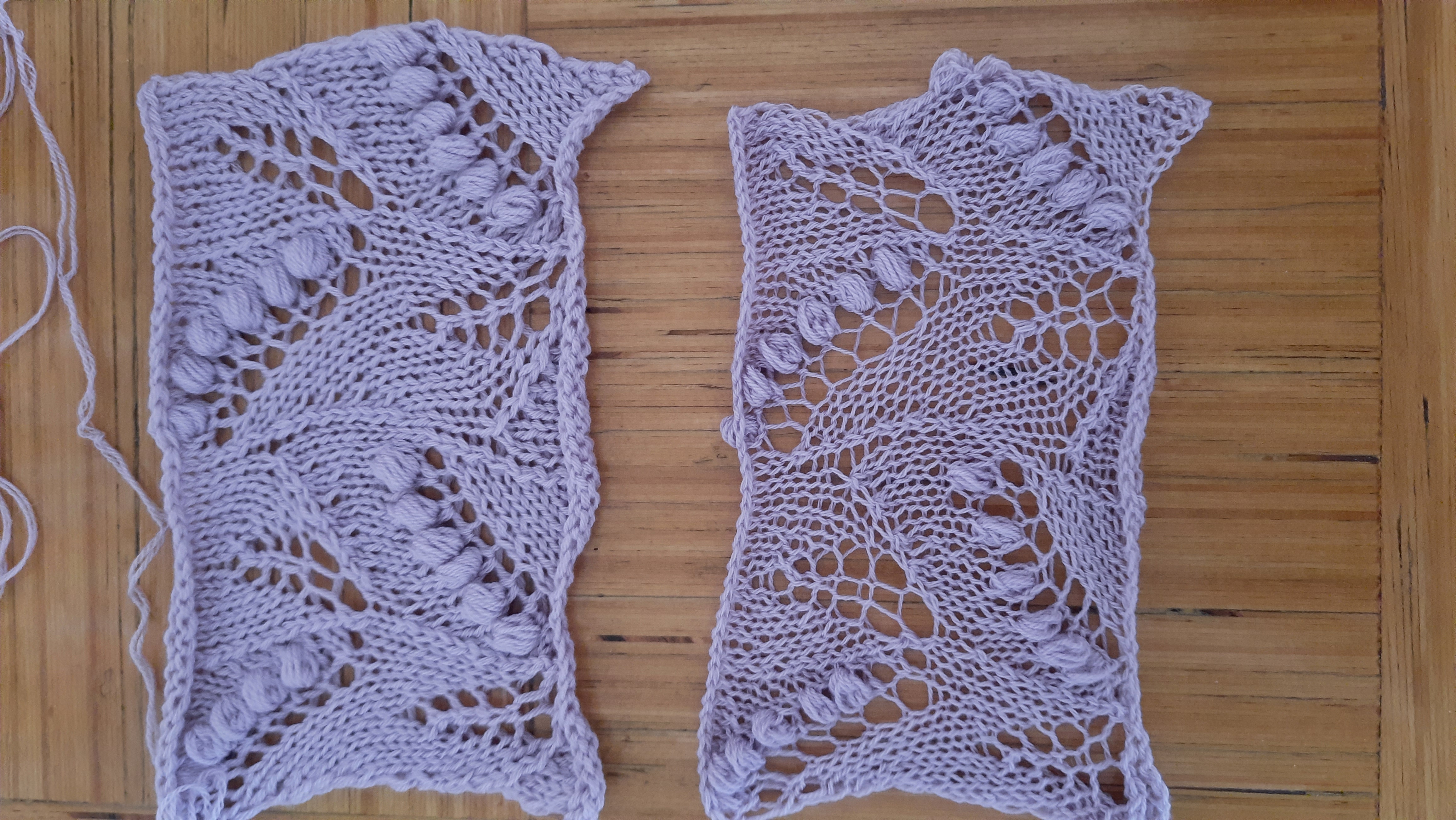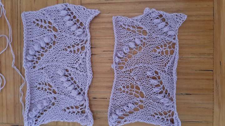 Sain tellimusele pidulikule pitskampsunile, tegin 2 tööproovi, algul kahekordse lõngaga, tundus päris ilus. Hiljem otsustasin proovida, kuidas ühekorde lõngaga muster jääb. Tuli ikka palju peenem ja pidulikum, nii otsustasin kududa ikkagi ühekordsest lõngast. Lõngaks on Riia lõngapoest soetatud itaalia päritolu meriinolõng jämedusega 100g 940m.