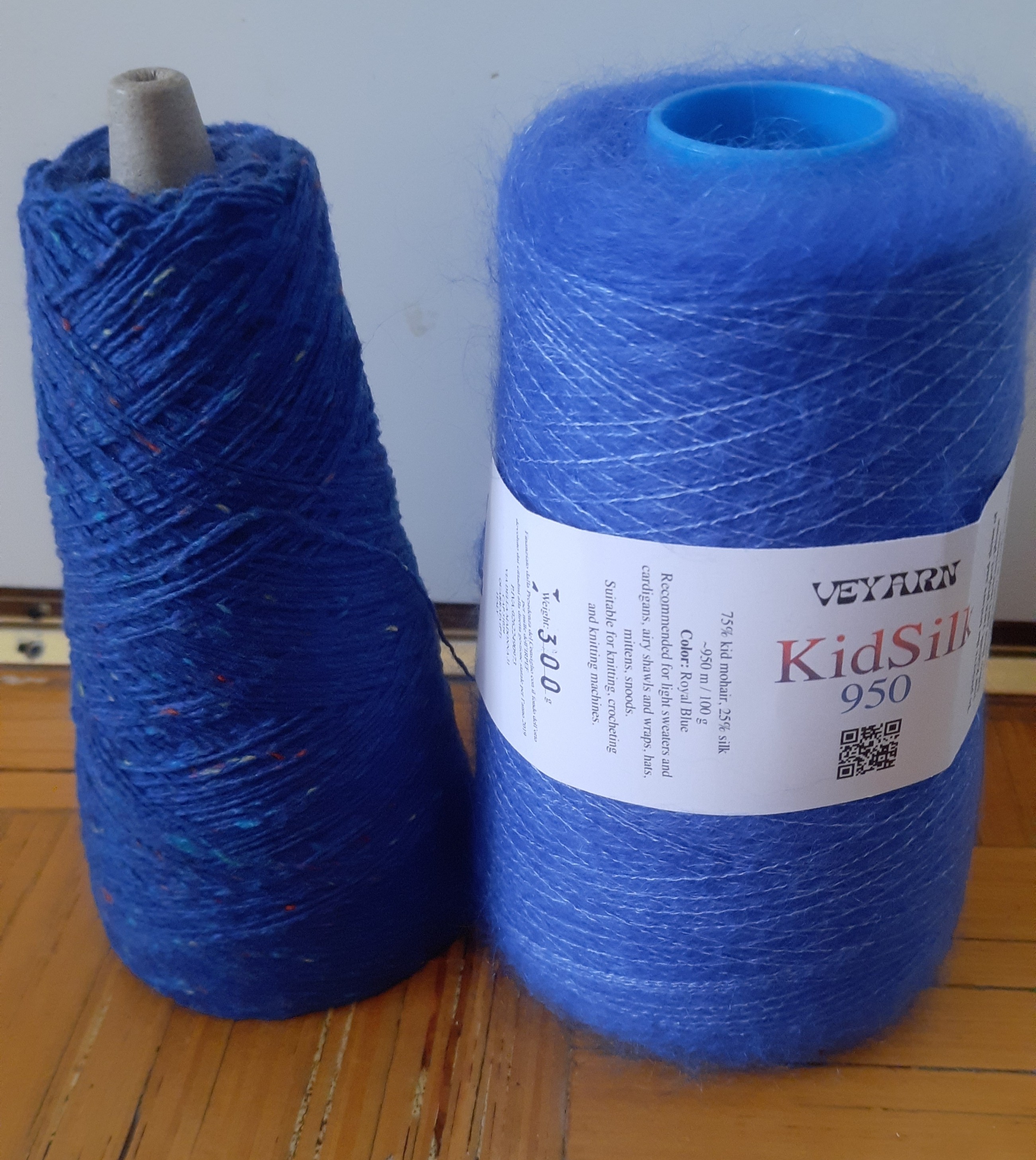 Vasakul siis tviidlõng, selle koostis ja värvivalik on näha siit https://donegalyarns.com/soft-donegal/ , tooniks 5565 DEEP BLUE