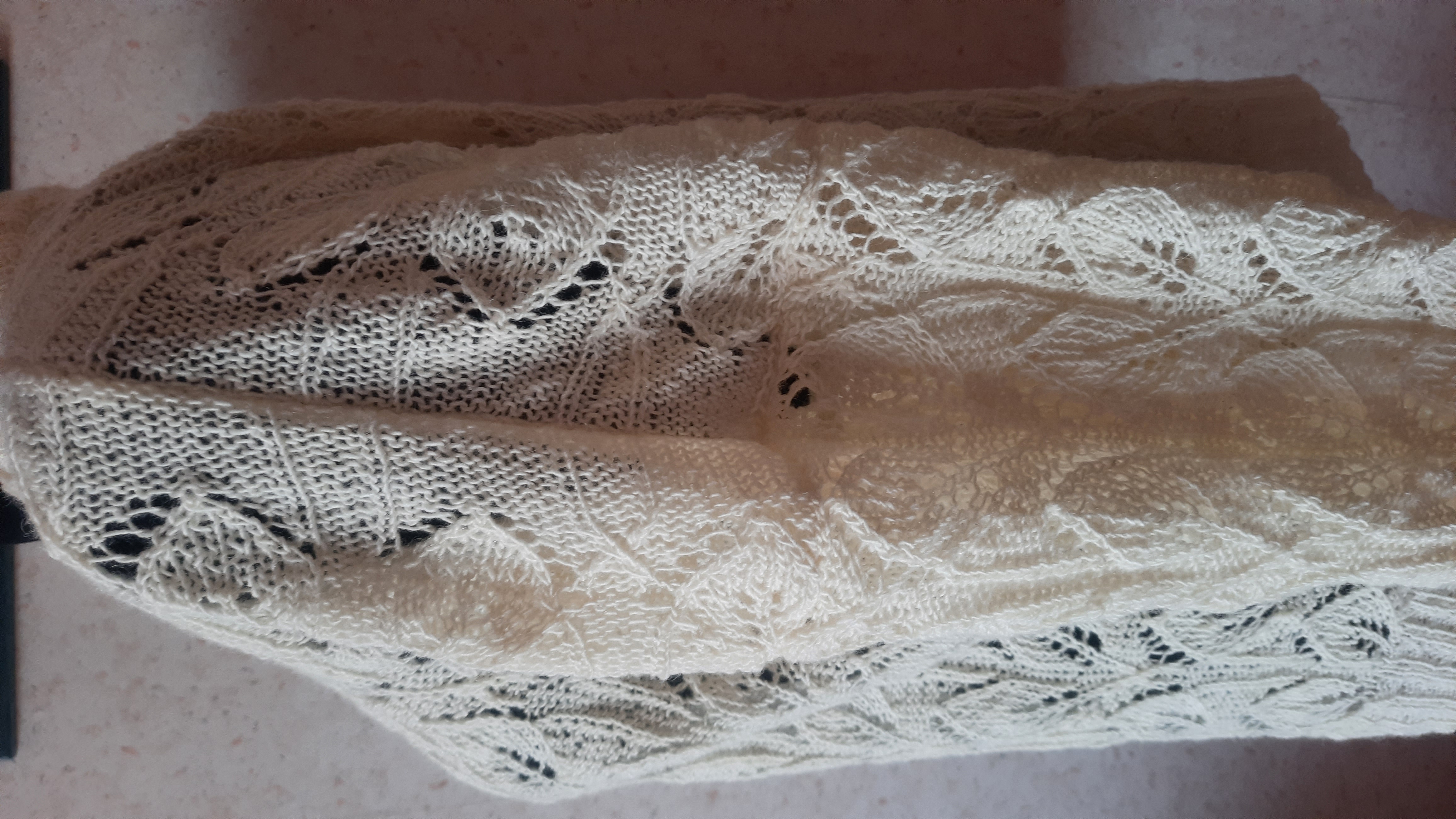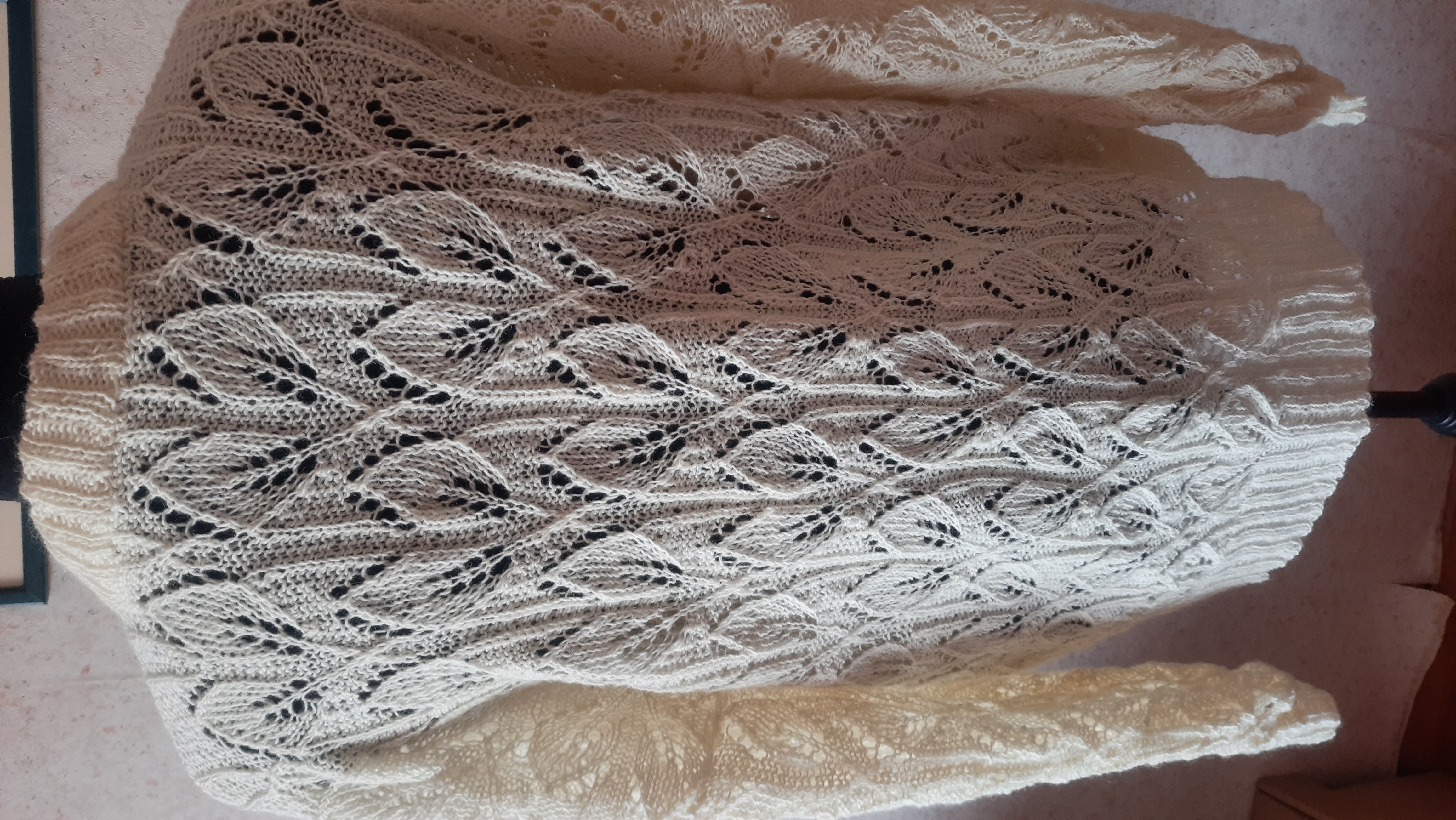 Monika tõi mulle veel ühe peenema lõnga, millest soovis kampsunit tütrele. Lõnga koostis on teadmata, aga kulus teda umbes 400 grammi, kudusin varrastega nr 3.
